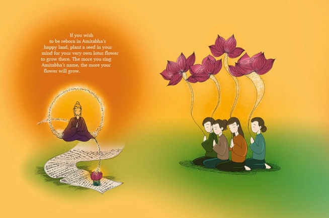 From award-winning authors, Amitabha’s Happy Land is a retelling of the Amitabha Sutra for children that will warm the hearts of readers of all ages.