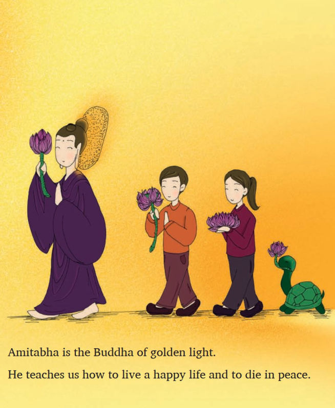 In this book, children learn how to recite Amitabha’s name and plant a seed for a happy life and a peaceful rebirth in the Happy Land. With simple words and stunning artwork, this is a book to come back to time and time again.